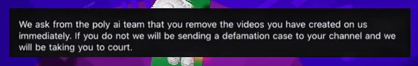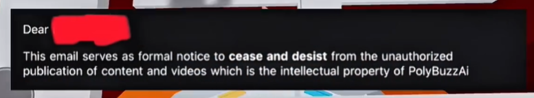 Anyways, moving on: In September 2025, YB Media, the company that owns PolyBuzz, sent 2 cease and desist emails to Nyvalk; small chunks of these are provided below: